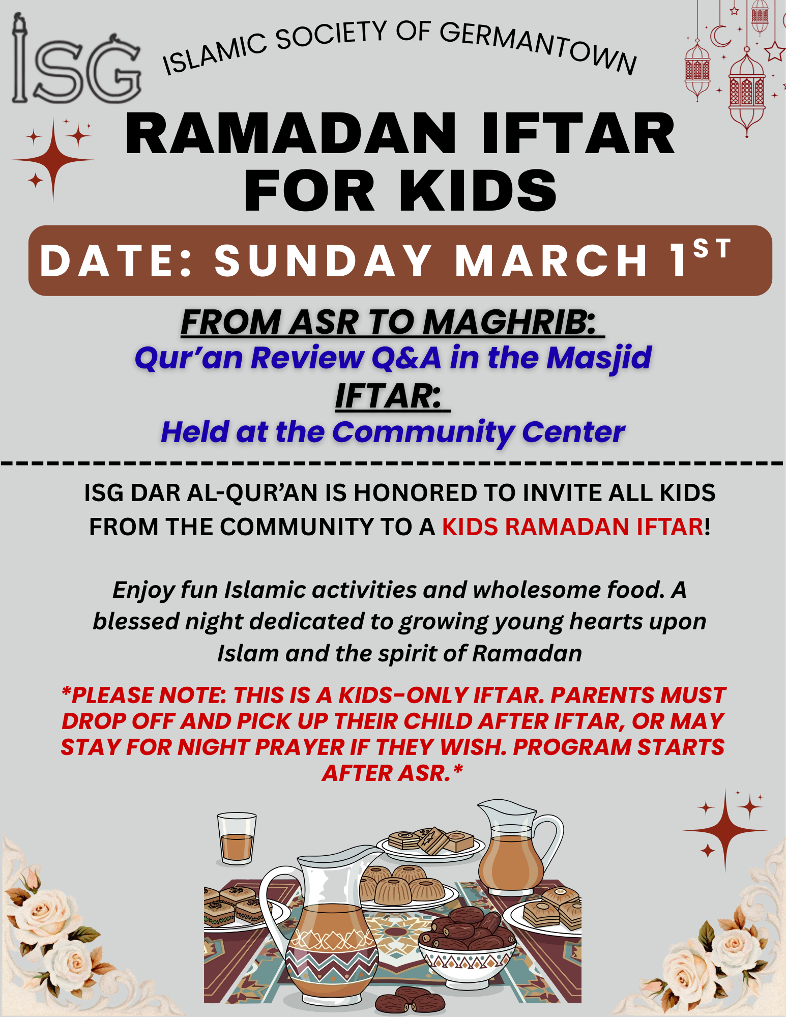 **Due to possible snow, KIDs Iftar is moved to March 1st**
