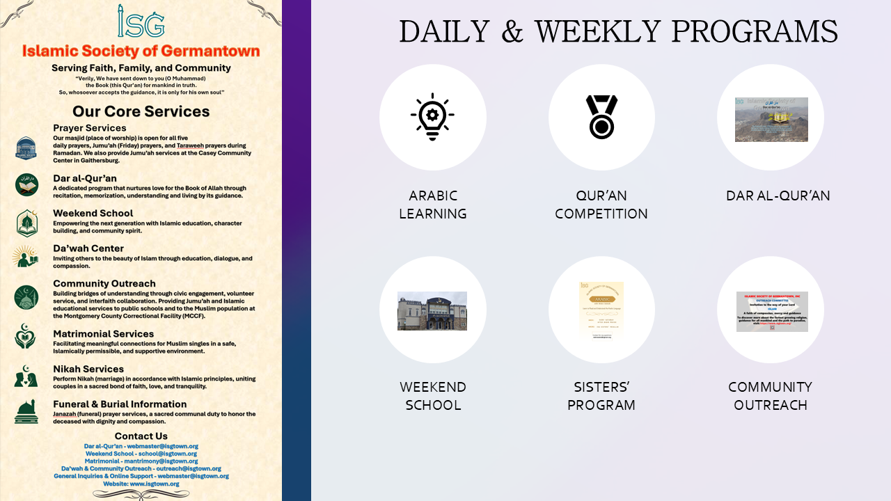 | *Starting Friday, Dhuhr 1:30 PM* | ||